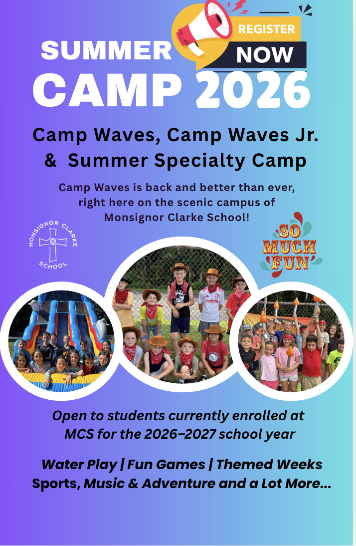 For more information regarding our summer camp options, please email Donna Manning at dmanning@monsignorclarkeschool.org